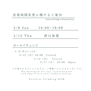 いつも Everfree Climbing Gym をご利用いただきありがとうございます。